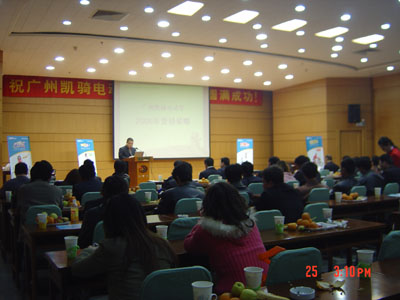 最后,凯骑天津分公司负责人钟杰超先生为在座的经销商详细讲述了凯骑电动车06年华北市场销售政策与品牌策略,他说通过以上政策,体现了公司对北方市场的重视以及对广大经销商的诚意,同时也说明了凯骑将会全力支持经销商做大做强,成长为当地最优秀的经销商,赢得更大的市场份额。我们相信,通过厂商双方之间的紧密合作,一定能够成为北方电动车市场上的强势品牌,成为中国电动车的领骑者。
