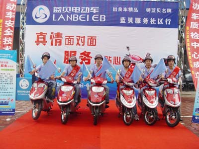 在全国各地蓝贝销售点进行电动车售后免费维护活动;各地经销商每周六、周日在消费者集中居住社区轮流设点,免费为消费者进行电动车检修、维护、咨询等。与消费者面对面交流,把消费者对蓝贝的需求和意见记录在案。