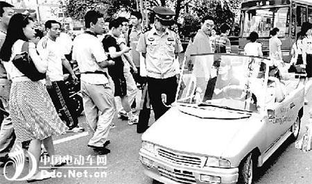 7日上午,在西安市南二环路上,一辆微型银灰色敞篷车吸引了众多市民的眼球。车上坐着一男一女,驾驶者名叫郭书君。他说,这是他发明的“超微型家用电动四轮车”。这辆车是他自己亲手制作的,平时跑100公里用4度电,时速可以达到40~50公里。低廉的成本让围观的市民啧啧称奇。不过这辆超级节能的敞篷车最终还是被值勤民警拦下,民警表示这种车辆现在还不允许上路行驶。