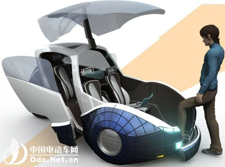 这款后转向式车采用的是2+1座椅设置,并采用了三个独立的马达安装在车轮上。无绳控制让仪表板没有了用武之地,而该车的车门则被放置在了前面。泪珠状的车身造型及提升式的车门可以有效改善停车场的布局,让停车场得到充分利用,有效节省空间,此外还可以缓解城市中的交通拥堵问题。