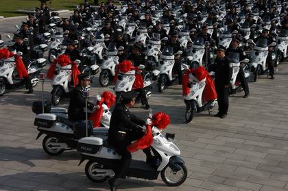 为了鼓励民警进一步扎根基层,深入群众,贴近百姓,昨日下午,市公安局举行责任区民警警用电动车发放仪式,为全市99位责任区民警每人配备了电动车。市委常委、公安局长俞流江出席发放仪式。