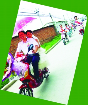 新郎陈剑飞兴奋地向记者介绍,用电动车娶亲是三天前才临时决定的,是一位朋友的偶然提议让他当即采纳并着手具体策划。为什么动用48辆电动车迎亲呢?因为他和妻子都是24岁,娶亲的路线选择两地来回约24公里,而两人合起来48岁,于是召集了47个未婚的年轻人,共计48辆电动车去娶亲。