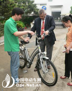 6月13日,保加利亚共和国驻华副总领事查瓦德•佩涅夫亲临上海华拓电动车有限公司。对我公司的锂电控制系统研发、制造及出口贸易状况进行实地考察和了解,与公司相关负责人就绿色节能环保产品、锂电电动自行车市场及合作方式等问题交换了意见并进行友好协商,向副总领事介绍了锂电电动自行车在中国的发展态势及电动自行车在西方国家的市场情况。在热情友好的交谈过程中,副总领事查瓦德•佩涅夫对华拓公司的锂电电动自行车产生了极大兴趣,说:保加利亚现已加入欧盟组织,成为欧盟巨大市场的一部分。他诚挚希望加强双方沟通和了解,建立长期稳定的友好合作关系。