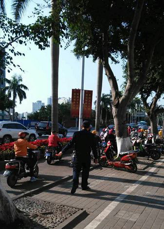 2月14日进入春运返程高峰,海口交通执法队员在海口汽车南站、东站等交通枢纽维持运营秩序,对非法营运的电动自行车和私家车进行查处,当天共查处106辆。