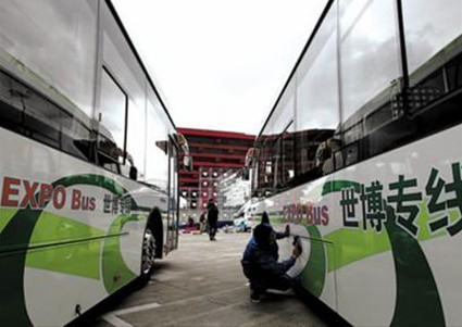 本届上海世博会上将有120辆纯电动客车服务游客。据介绍,每部纯电动车内都装有10个或12个电池箱,园区内还将配备1000多块电池箱,以保证车辆的正常更换。据悉,这种电池箱每个造价在7万元左右,一辆纯电动整车的成本超过200万元。该车在满载的情况下行驶100公里更换一次电池,世博期间它将主要往来于浦东浦西园区接送游客。