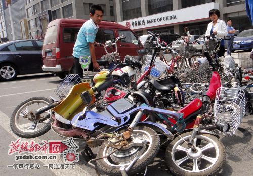 5月12日上午,在石家庄市广安大街与谈南路交叉口附近停放自行车和电动车的一些车主们来推车时发现,自己的车子“杯具”了。这些自行车和电动车不知道被什么人堆在一起扔在了街上。据了解,石家庄市广安大街这一带自行车与汽车的“车位之争”由来已久,经常有自行车被扔进花池或者快车道的事件发生。