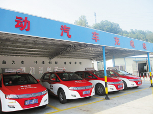 我市年内将建5个充电站,会有更多电动出租车上路。