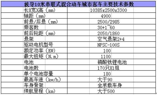 目前,波导电驱动城市客车有3款,从10米到14米不等,涵盖纯电动、混合动力车型。本次展会,波导展出的是其10米串联式混合动力客车,该车最多可容纳60人,采用一组170只磷酸铁锂电池(洛阳中航),其宣称的续航里程超过500公里。