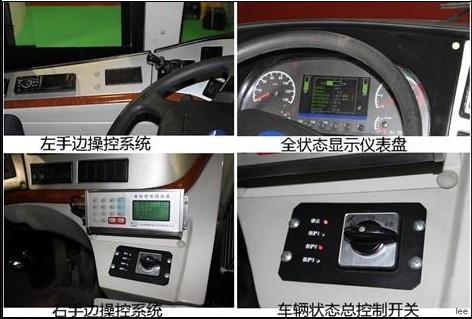 由于是电机直接驱动,取消了传统的离合器和变速箱,波导混合动力客车仪表台操控键大大简化,所有的车辆状态由右手边操控电机的总开关一键控制。该混合动力车的仪表台比较精致,各个操控键左右手的分工也很合理;仪表盘能瞬时显示车辆目前的运行状态,方便司机了解车辆,及时调整驾驶行为,规避一些不规范的操作行为。
