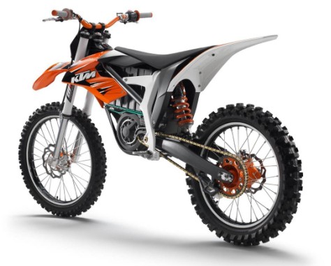 2010'东京车展上,KTM展出了一款零排放的越野车。这部全新的KTM电动车未有具体的型号,在车身配置上有两个版本:采用公路轮胎、独特上下前叉连板的多功能Supermotard版,以及采用越野轮胎的Cross/Enduro版。该车采用电机驱动,最大马力输出达到30匹。以锂电池负责提供电力,充电的时间大约是1.5小时,全车的重量大约是90公斤。