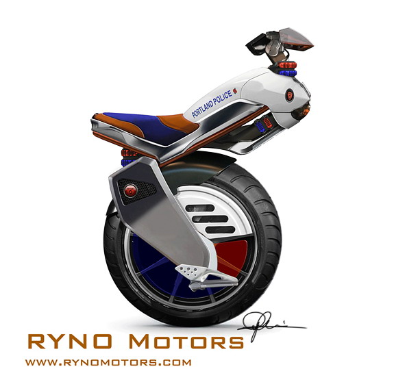 这是Ryno Motors近期推出的一款电动独轮摩托车,车身配备了自动平衡系统,电子控制和监控系统。电池电量检测系统可以在电池电量剩余25%黄灯提醒,剩余5%时红灯警告。设计优良的防抱死刹车系统可以避免驾驶者在急刹车时摔倒。