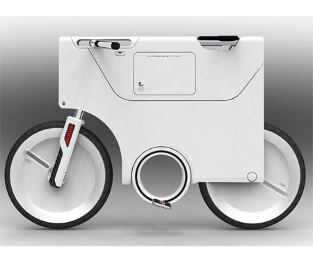 这款电动自行车采用锂离子电池供电,同时也可以使用脚踏驱动,当使用电力驱动时可以将两个脚踏降低到最低端,这样就可以把脚上去休息一下了。整个自行车就像一个平板,它所有的扩展组件如车把、车座、脚踏都可以折叠起来。自行车有个储物空间,可以将笔记本、手机等电子设备放进去,自行车可以与存储其间的笔记本链接并登录到网上,通过自行车上的屏幕显示出地图来导航。