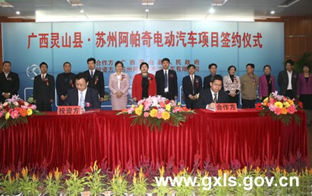 12月1日,灵山县与苏州阿帕奇电动汽车有限公司在县城举行项目签约仪式,标志苏州阿帕奇电动汽车项目正式成功落户灵山县。