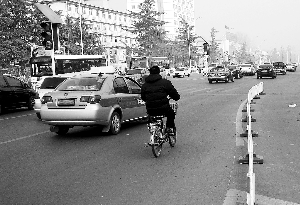 记者在东风路上看到,很多电动车都在机动车道上行驶。在汽车排队等待红灯时,一些性急的电动车主便在汽车之间的缝隙中穿梭前行。在朝阳大街、阳光大街等路段,都存在类似的情况。
