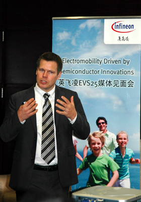 英飞凌汽车电驱动部门OPM总监Mark Munzer说:“全球石油资源开始面临供应短缺的现状正在刺激市场对电动汽车的需求,另外,包括中国、日本和以色列在内的政府支持也是推动电动汽车市场发展的一大重要因素。未来电动汽车市场能否成功的关键将在很大程度上取决于汽油的价格和锂电池组的成本。”
