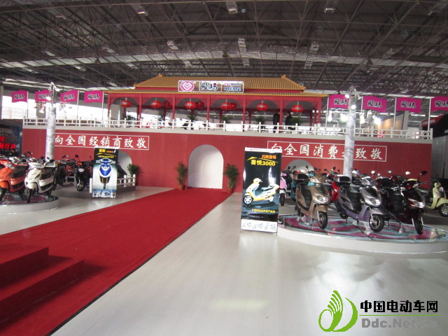 第一眼看到爱玛电动车的展会,我想所有人都会不约而同的想到北京天安门。的确,爱玛可以说是将北京天安门搬进了台州展。城台、城楼、拱门、标语,无不让人联系到天安门,同样给人威严庄重,气势宏大的感觉。