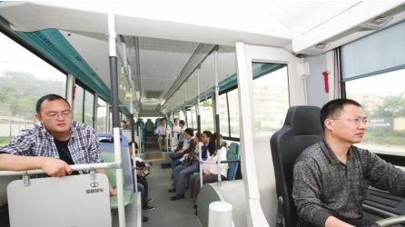 成都客车股份有限公司(蜀都客车)纯电动公交客车已于去年上半年首次亮相,这款纯电动客车长12米,额定载客70人,续驶里程可达260公里,充一次电后基本可满足一天的运营需求。据成客负责人介绍,去年5月,首批两辆纯电动客车已经正式投入公交运营。从外观上看,该车与普通公交车并没太大差别。不过该车底盘很低,一抬脚就上了车。驾驶室里没有离合踏板,也没普通的换挡,而是利用方向盘下一个换挡玻片换挡。起步加速都很平稳,噪音小,在十多秒内就可加速到50公里以上时速