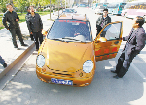 40多岁的申先生原来是搞测量工作的,2009年6月份开始着手研制电动汽车,不到两年时间里试制了两辆第一代电动汽车。“只要解决了相关数据的匹配问题,零部件市场上都有现成的,组装起来就差不多了。”申先生说,现在他的一代、二代电动汽车充一次电需要8个多小时,最远能跑200多公里,最快时速在70-90公里。按每天用电15度计算,一年用电成本2847元,远远低于普通燃油汽车的使用成本。蓄电池的使用寿命在3-4年,换一次蓄电池的费用在4000元左右。