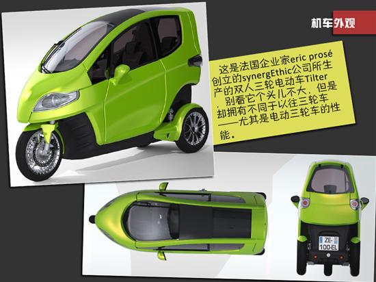 你相信吗,一辆电动三轮机车的性能比拼四轮燃油车?是的,在国际汽车、机车厂商着力于高性能低能耗四轮\三轮车的今天,时速过百的三轮集成已经不是梦想……这是法国企业家eric prosé 创立的synergEthic公司所生产的双人三轮电动车Tilter,别看它个头儿不大,但是却拥有不同于以往三轮车尤其是电动三轮车的性能。