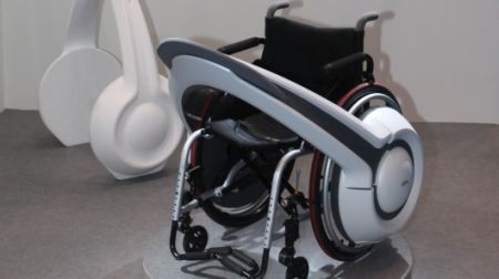 这款轮椅助行器就是以此为目标设计而成的,它看起来就像是一只巨大的耳机,两个圆盘可以分别卡在轮椅的轮子上,通过锂电池提供能量来推动轮椅前进,最高可达到20千米/时的速度。