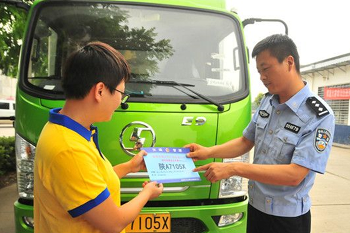 2017-07-03 陕西省首张新能源货车城区通行证在咸颁发 可全时段在城区通行