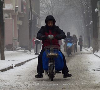 在公交站等公车的时候,小编看见路上的私家车、公交车、电动自行车都走的很慢。尤其是电动自行车,一路上看见已有很多电动自行车因轮胎打滑,也有的因夜里停在外面加上天气寒冷,电动自行车的刹车被冻住,骑到路上碰到行人过马路时一下子都刹不住车,有的还摔了跤。