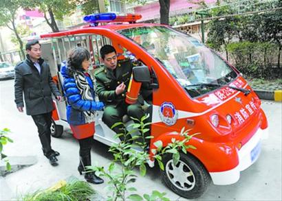 据了解,这辆装载有简易消防器具,并加装了音频、视频播放设备的消防电动车,集灭火和消防宣传功能于一身,具有体积小、功能全、操作简便等特点,专门针对老式里弄小区设计,在对大型消防车无法进入的二级旧里火灾初期扑救中,将会发挥意想不到的效果。