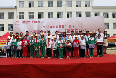 据悉,活动自4月18日启动以来,已先后走进菏泽定陶、潍坊安丘,临沂平邑仲村镇岐山小学是活动的第三站也是最后一站,至此,共青团山东省委、山东省少工委、山东教育电视台联合天津泰丰小鸟电动车业有限公司开展的与“心愿直通车”偕行——温暖2013少年儿童关爱行动“300+3”个心愿实现之旅圆满完成,心愿总价值达34.2万元。为之拍摄的《温暖2013》关爱少年儿童专题片也将于6月9日起,每周日晚7:35分在山东教育电视台播出。