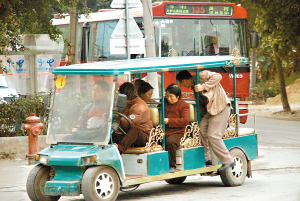 我们住在城乡接合部,每天都要到市区上班。公交车只通到村口,每天从家里出发,再步行20多分钟到村口坐车,实在辛苦,这时每人1元就能把村民从家门口送到村口的电瓶车可帮了大忙。可惜,目前还没相关政策批准它们合法运营,这些“村巴”时时刻刻都存在被取缔的危险,那样我们又要靠两条腿跋涉到村口赶公交车了。