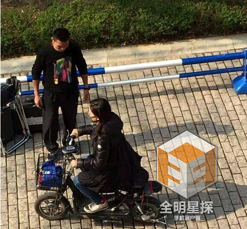 2016-04-20 赵薇片场骑电动车 口罩遮面全副武装