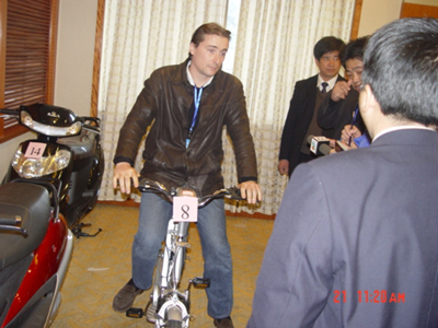 (图三)外宾试骑新车