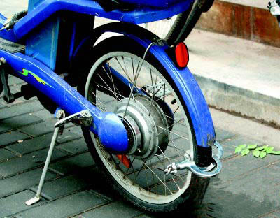 昨日下午3时40分,市民陈大爷途经含光门里的火药局巷巷口时,在一家麻将馆门口,发现一辆电动自行车很奇怪:车子怎么被手铐“铐住”了!