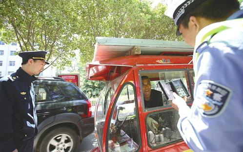 5月12日,执法人员查处一起涉嫌非法营运的电动三轮车。针对城市三轮电动和摩托非法营运顽症“死灰复燃”现象,运城市公安交警和交通部门联合执法,在市区加大巡逻力度,...