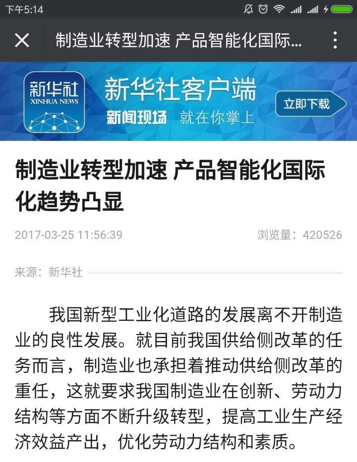 2017-03-28 国家通讯社点赞新日电动车:产品智能化代表我国制造业转型